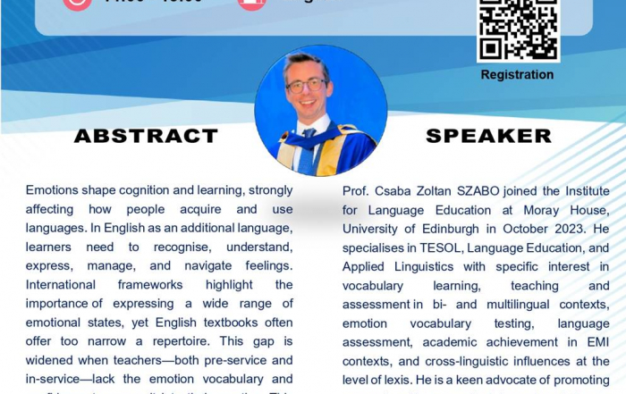 barryreynolds Barry Lee Reynolds2025-10-15T17:16:33+08:00Seminar on “Emotions in English language classrooms – An insight into emotion vocabulary assessment”barryreynolds Barry Lee Reynolds2025-10-15T17:16:33+08:00August 25th, 2025|